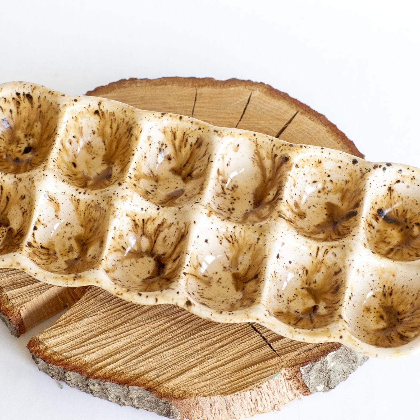 Store and display your farm-fresh eggs in our Ceramic Egg Carton in style. Crafted from durable ceramic and finished in a classic one-color design, this piece is as beautiful as it is practical, making it a must-have for any kitchen. Measuring 12” L x 5” W x 1 ⅜” H, this egg holder is designed to fit a dozen eggs securely, keeping them organized and easily accessible on your counter or in your fridge. Its clean, minimalist design blends seamlessly with any kitchen décor, making it ideal for everyday use and special occasions.